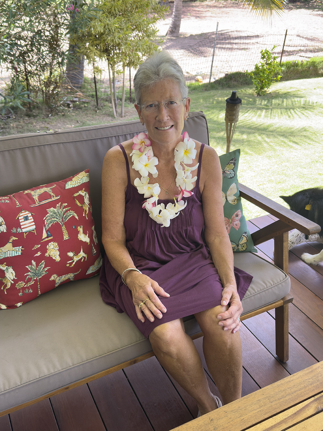 Linda does not like wearing a corsage or a Lei. However, she was willing to wear the one I made. She asked that I ask our friend Marie to wear it at Easter Sunday dinner at our house. Marie wore the Lei as well.