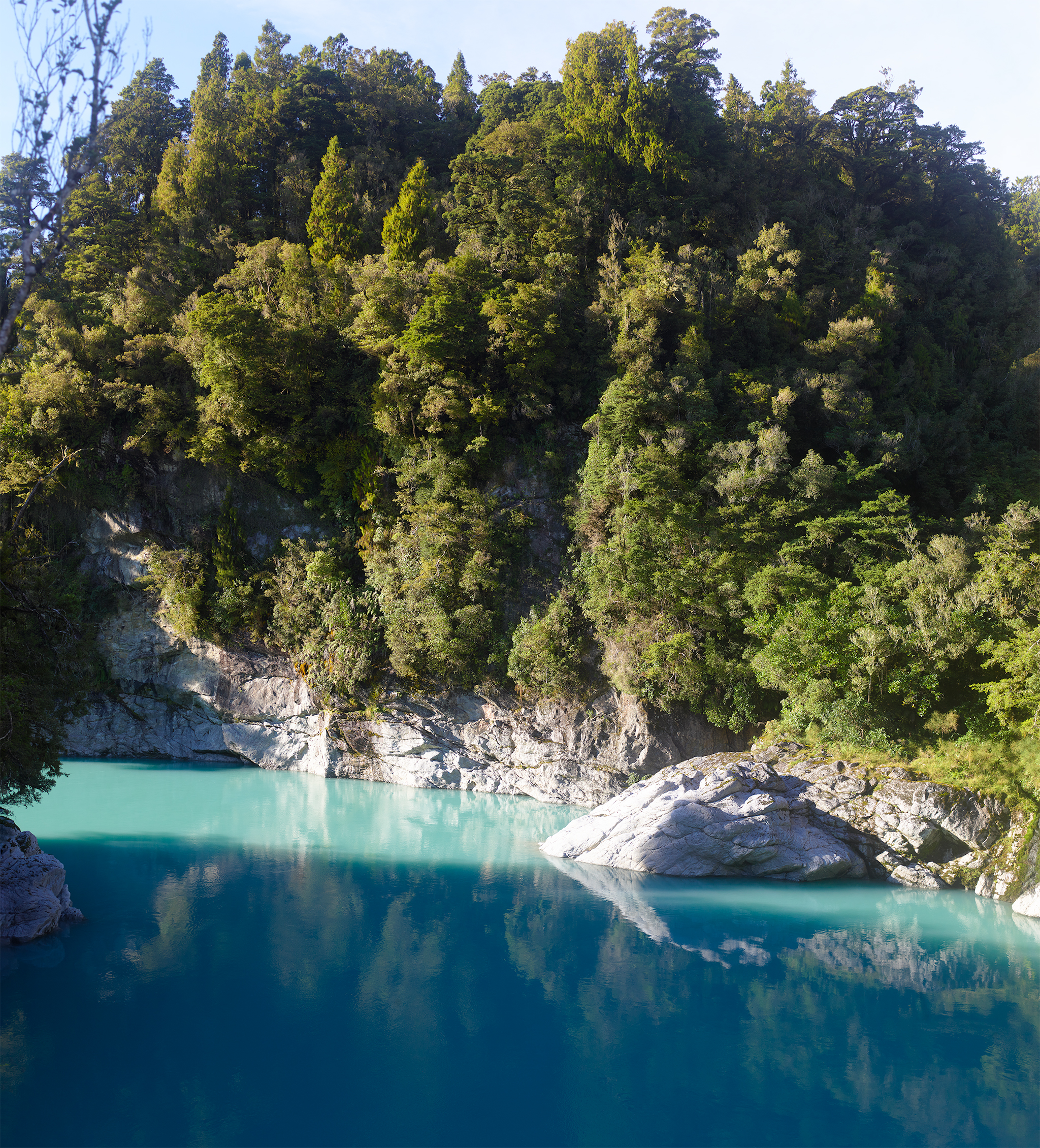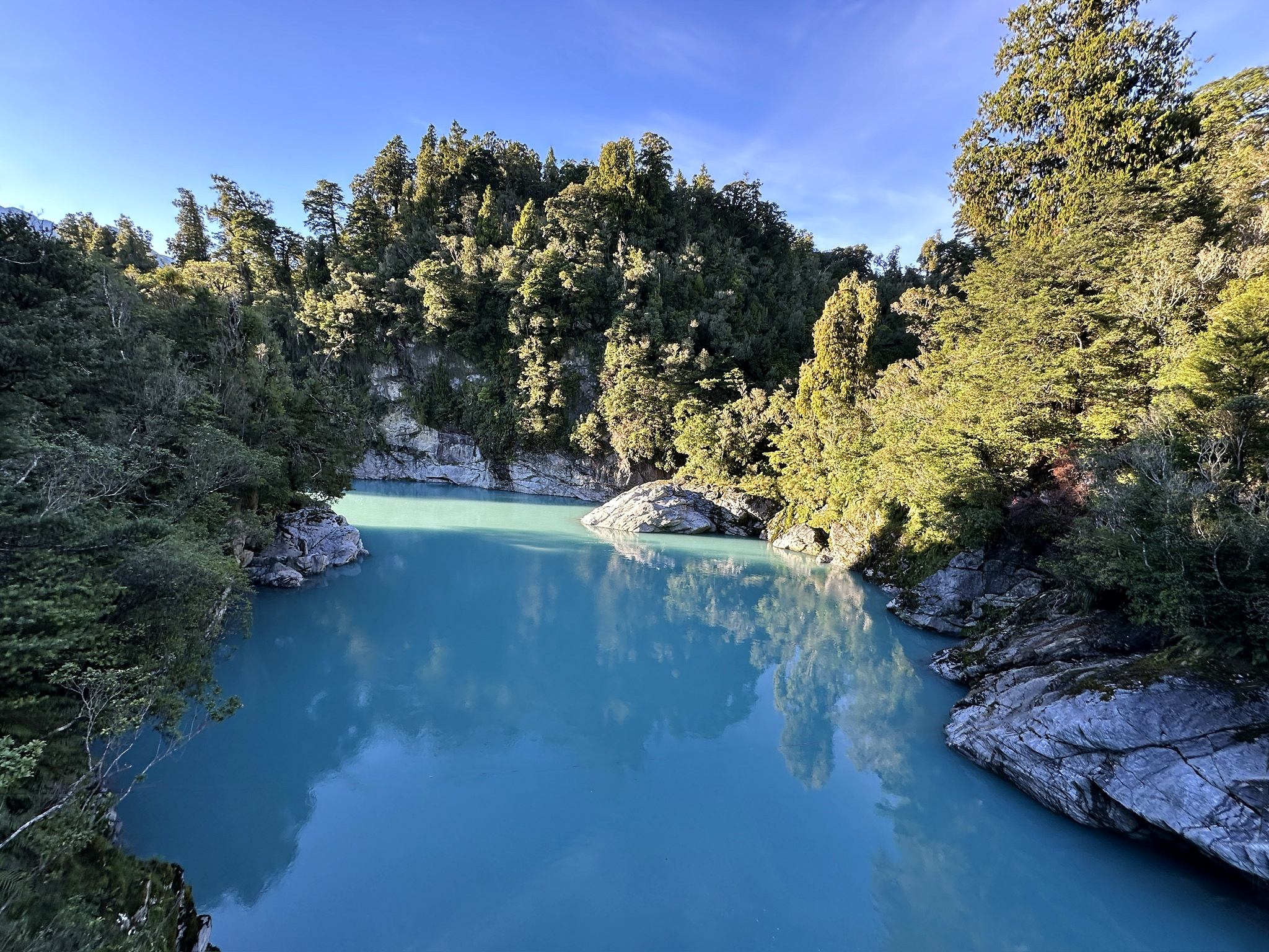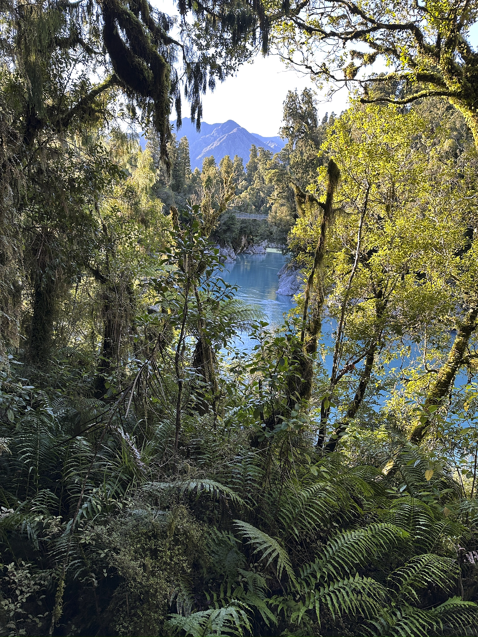 The glacial blue of the water in the Hokitika Gorge from the Swing Bridge is an experience like few others. The number of different shades of blue seem impossible to count.